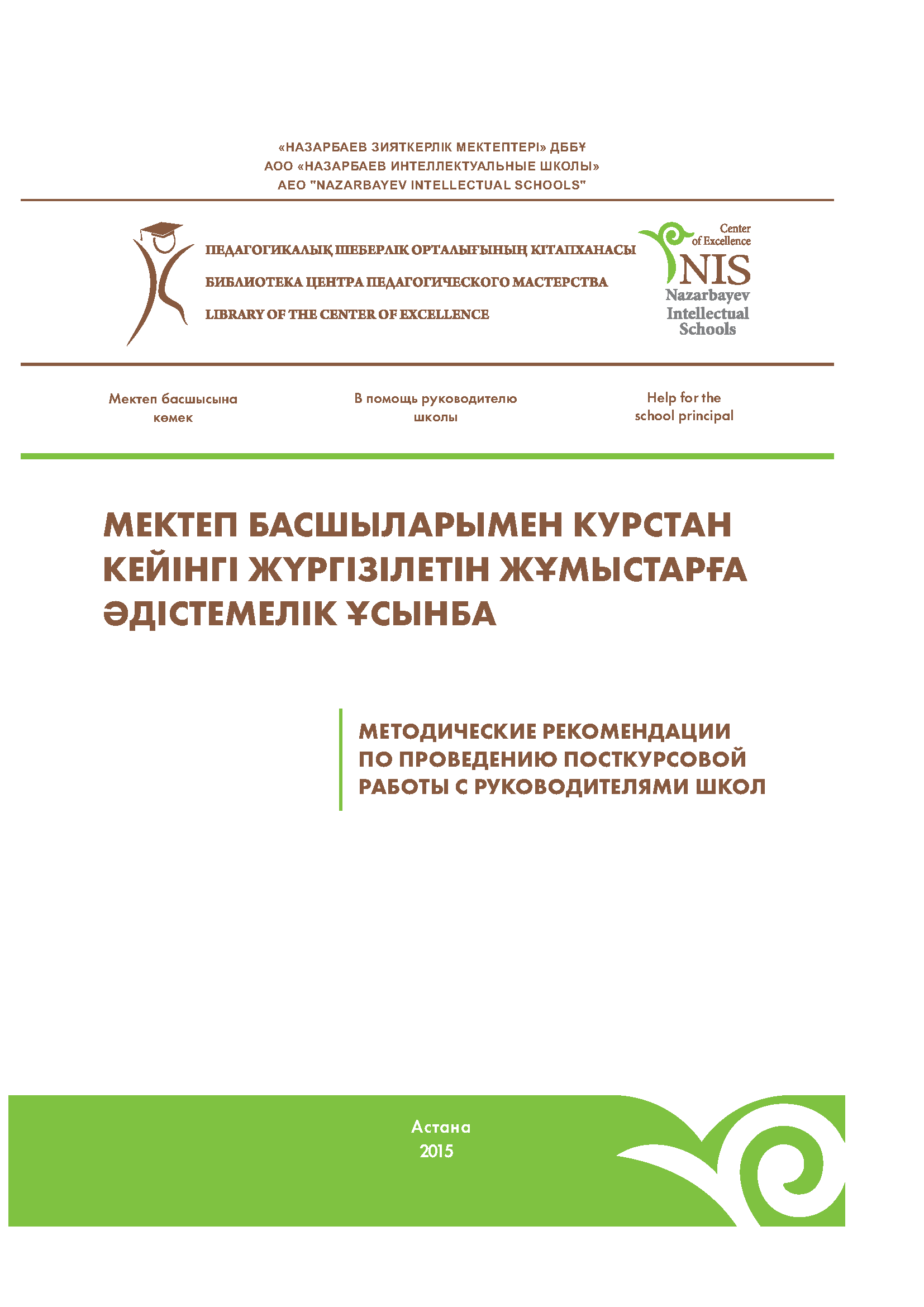 МЕКТЕП БАСШЫЛАРЫМЕН КУРСТАН КЕЙІНГІ ЖҮРГІЗІЛЕТІН ЖҰМЫСТАРҒА ӘДІСТЕМЕЛІК ҰСЫНБА МЕТОДИЧЕСКИЕ РЕКОМЕНДАЦИИ ПО ПРОВЕДЕНИЮ ПОСТКУРСОВОЙ РАБОТЫ С РУКОВОДИТЕЛЯМИ ШКОЛ