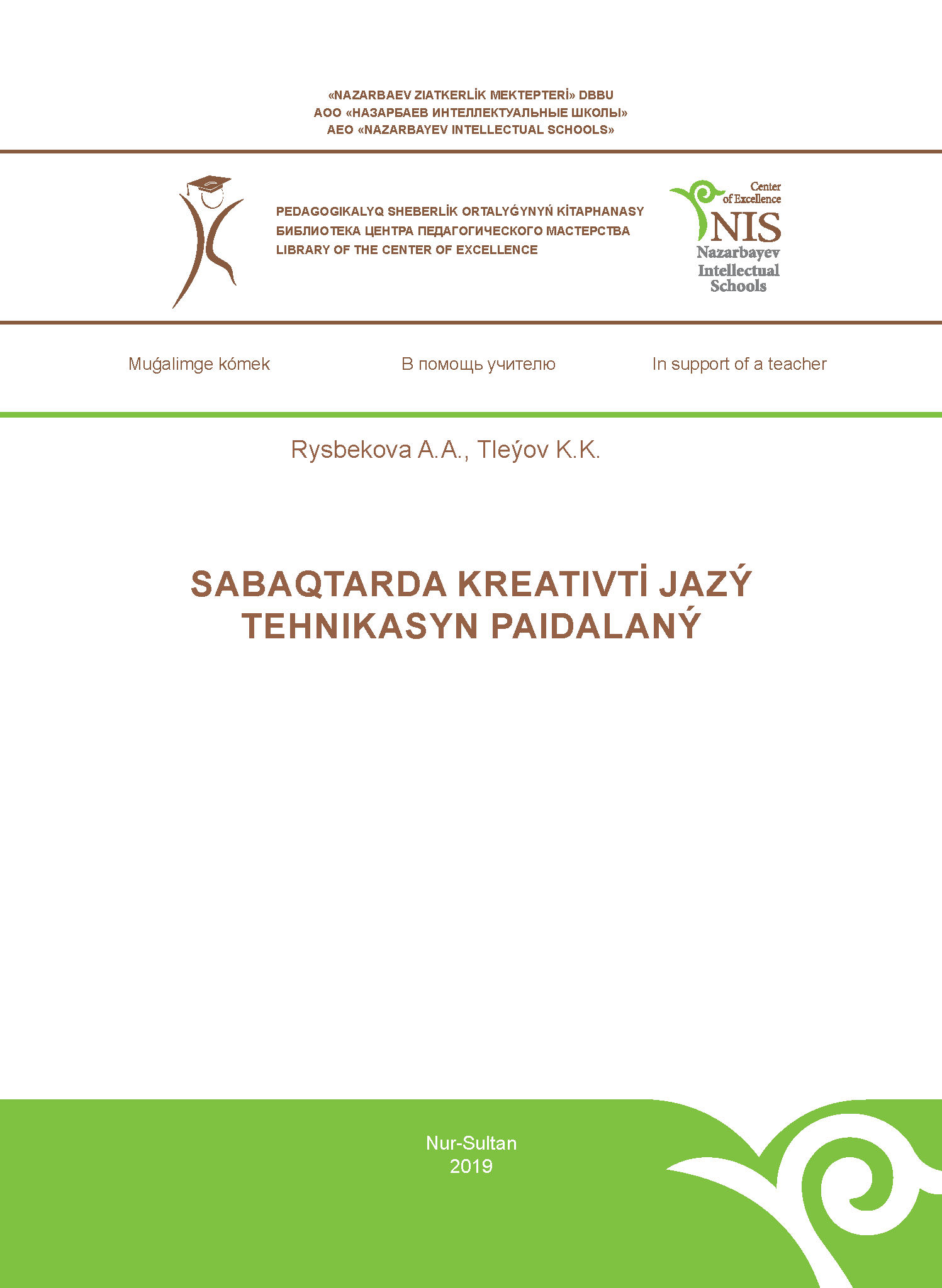 Сабақтарда креативті жазу техникасын пайдалану/А.А. Рысбекова, К.К. Тлеуов. – Нұр-Сұлтан: «Назарбаев Зияткерлік мектептері» ДББҰ Педагогикалық шеберліқ орталығы, 2019. – 32 б.