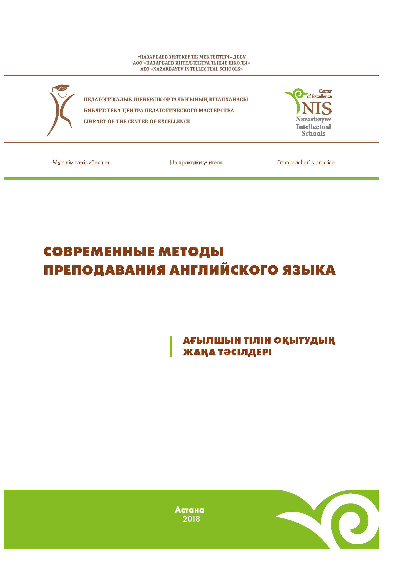 Современные методы преподавания английского языка: методические рекомендации/ А.Ш. Джурунова. – Астана: Центр педагогического мастерства АОО «Назарбаев Интеллектуальные школы», 2018. – 42 с.