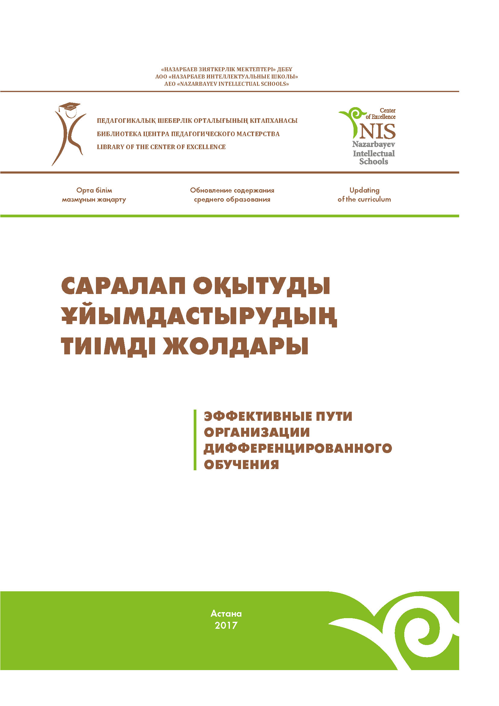 Сыныпта саралап оқытуды ұйымдастырудың ерекшеліктері: әдістемелік нұсқаулық/Дильманов Б.К., Раймкулова Ж.Т. – Нұр-Сұлтан: «Назарбаев Зияткерлік мектептері» ДББҰ Педагогикалық шеберлік орталығы, 2020. – 106 б.