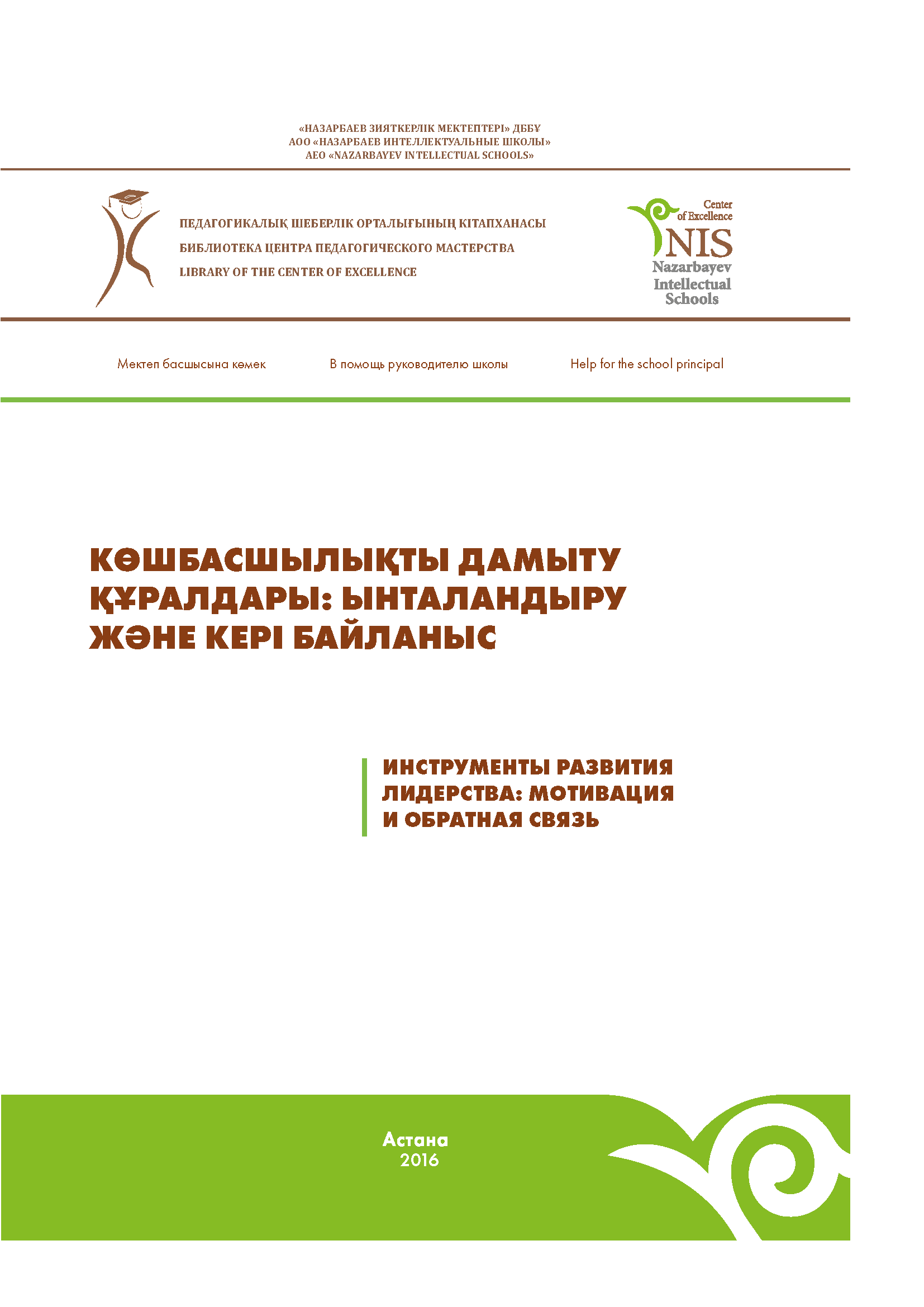 Көшбасшылықты дамыту құралдары: ынталандыру және кері байланыс: әдістемелік құрал/Ф.У. Жунусова, Т.К. Нөгербаев – Астана: «Назарбаев Зияткерлік мектептері» ДББҰ Педагогикалық шеберлік орталығы, 2016. – 48 б.