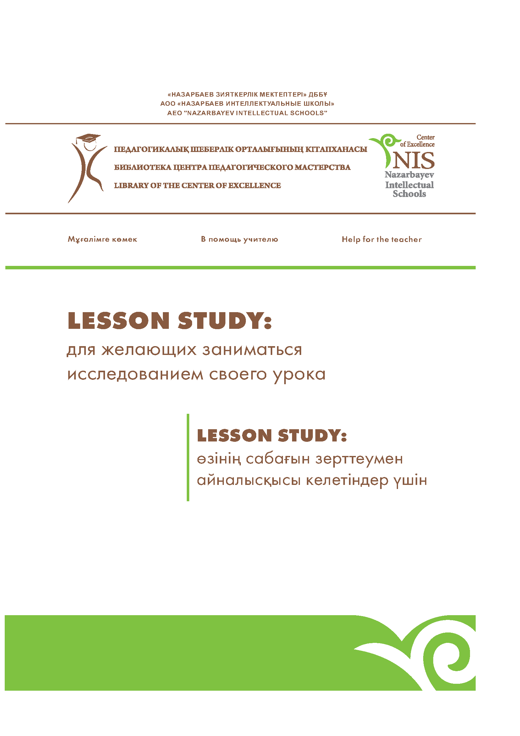 Lesson Study: для желающих заниматься исследованием своего урока: методические рекомендации/Ж.Б. Абдрахманова, С.Б. Биярова, Г.Т. Зейнолдина и др. – Астана: АОО «Назарбаев Интеллектуальные школы» Центр педагогического мастерства, 2015. – 50 с.