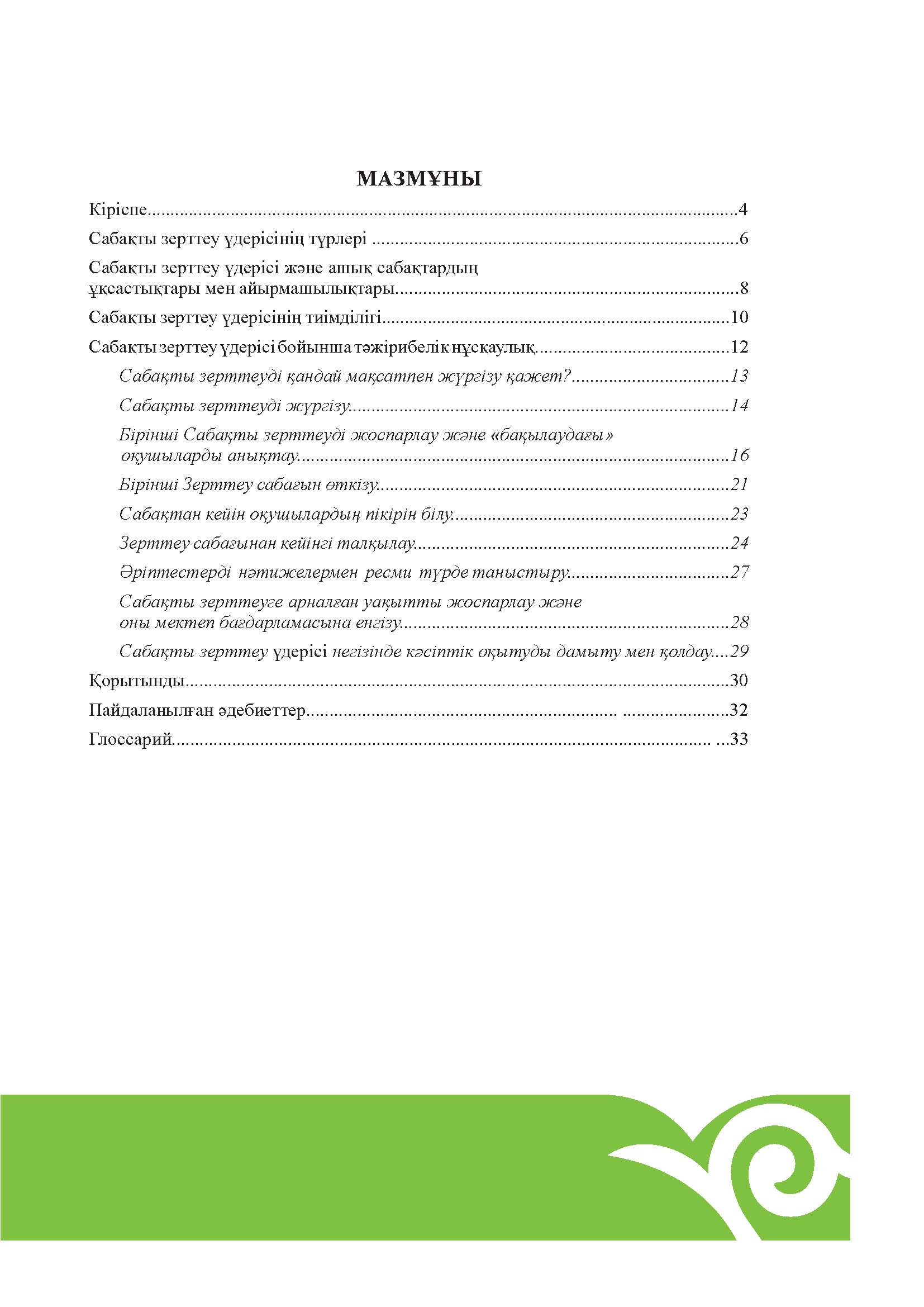 Сабақты зерттеуді қалай сапалы жүргізуге болады: әдістемелік ұсыным/ А.А. Ошақбаева. – Астана: «Назарбаев Зияткерлік мектептері» ДББҰ Педагогикалық шеберлік орталығы, 2016. – 34 б.