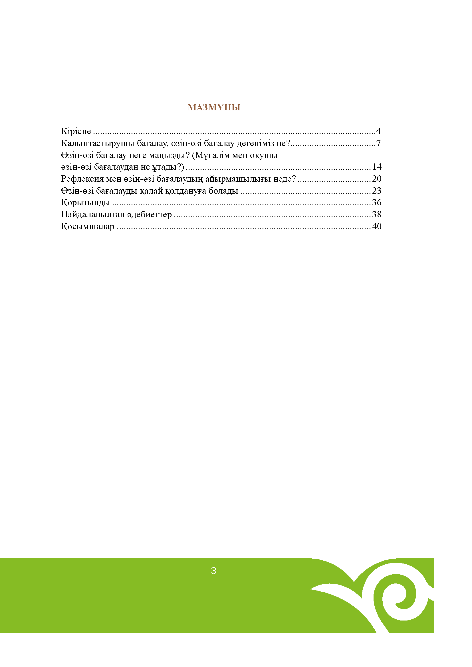 Қосымшада мұғалімдерге арналған өзін-өзі бағалау нысандары ұсынылған.