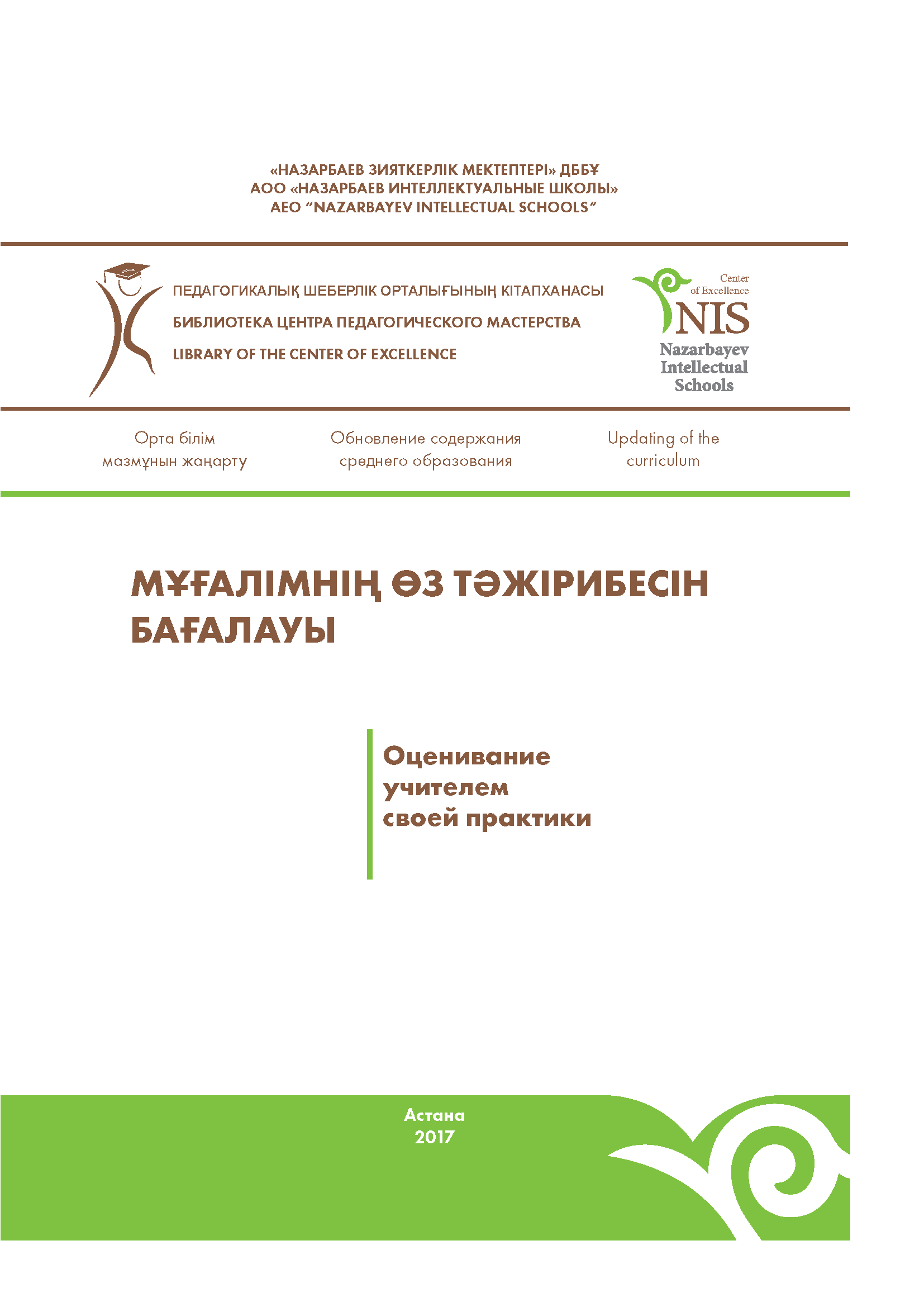 Мұғалімнің өз тәжірибесін бағалауы: әдістемелік құрал/А.Р. Ибраева. – Астана:«Назарбаев Зияткерлік мектептері» ДББҰ «Педагогикалық шеберлік орталығы»,2017. – 58 б.