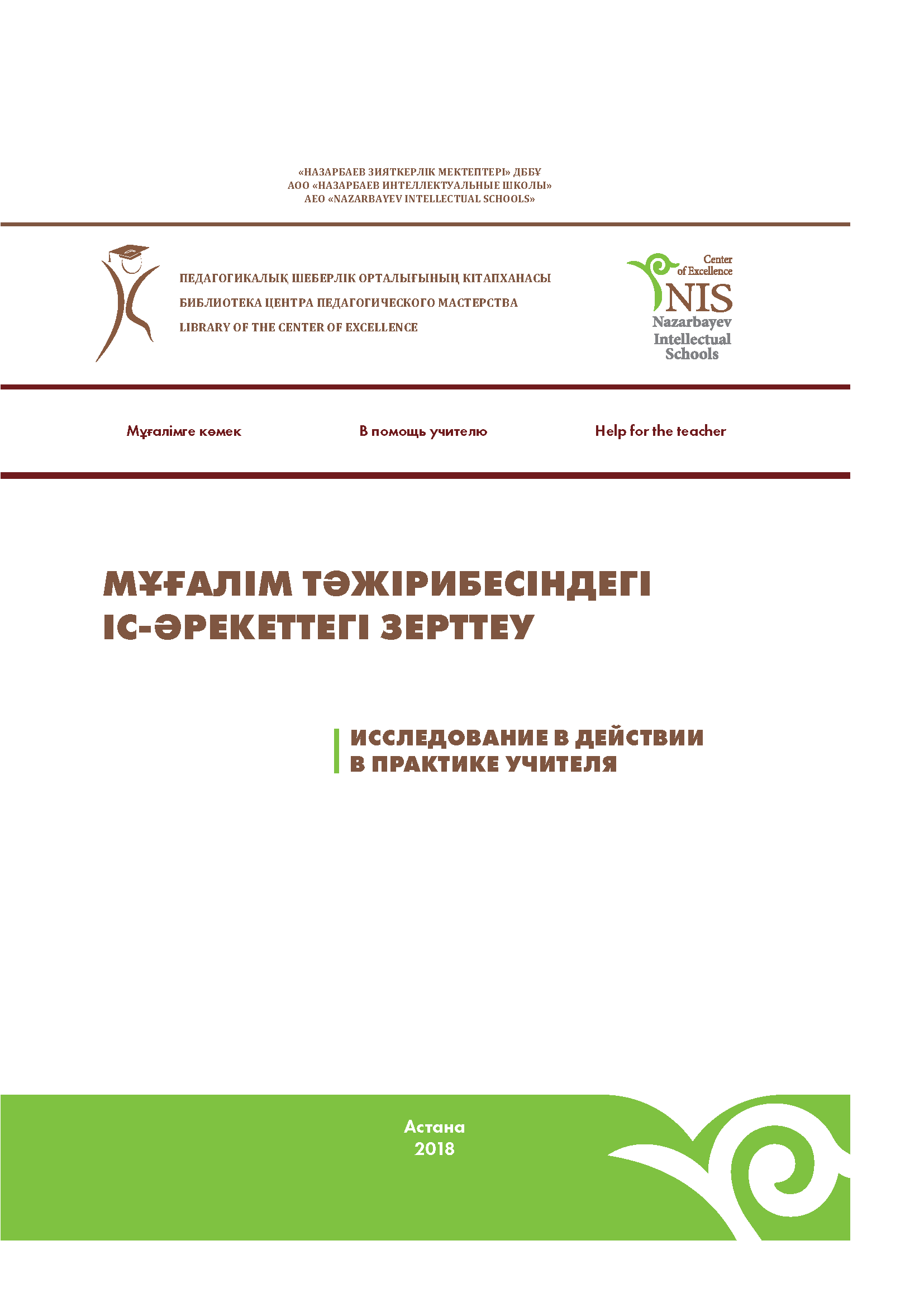 Мұғалім тәжірибесіндегі іс-әрекеттегі зерттеу: әдістемелік нұсқаулық/Г.Я. Қазығұлова, А.М. Елікбаева, Б.Т. Арынов, Л.С. Нұрханова, Ж.Е. Жаңабаева. – Астана: «Назарбаев Зияткерлік мектептері» ДББҰ Педагогикалық шеберлік орталығы, 2018. – 64 б.